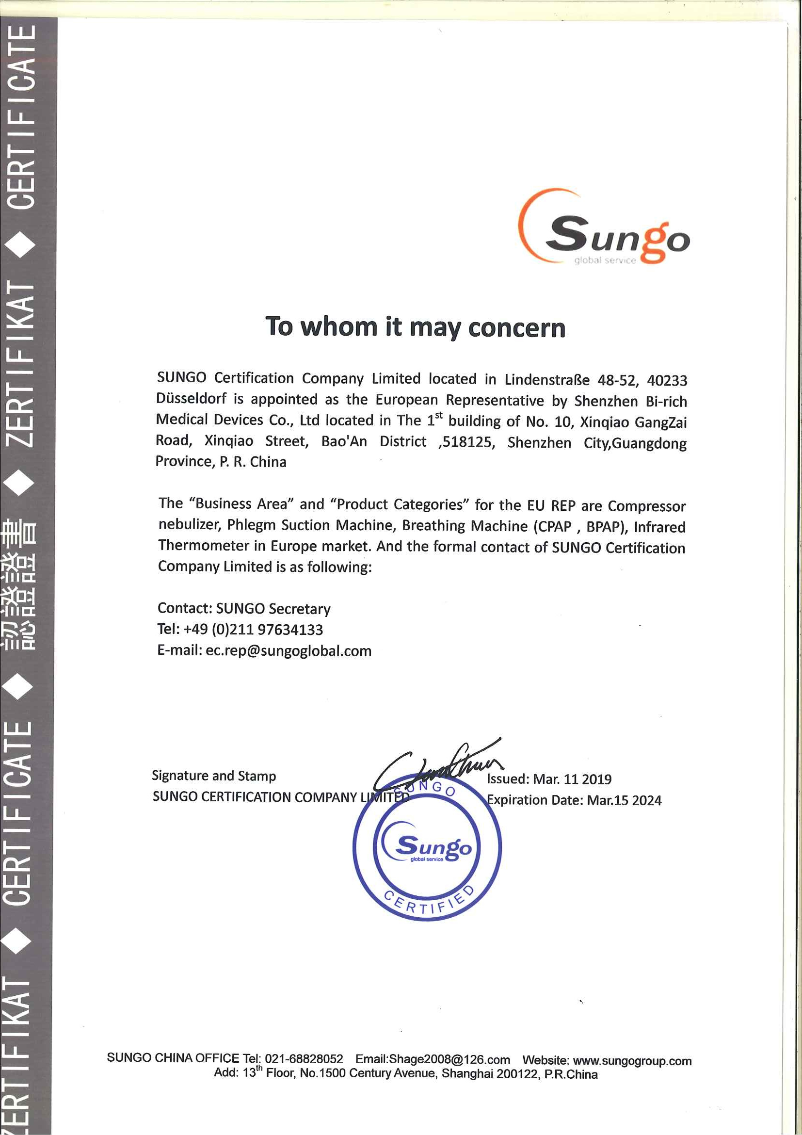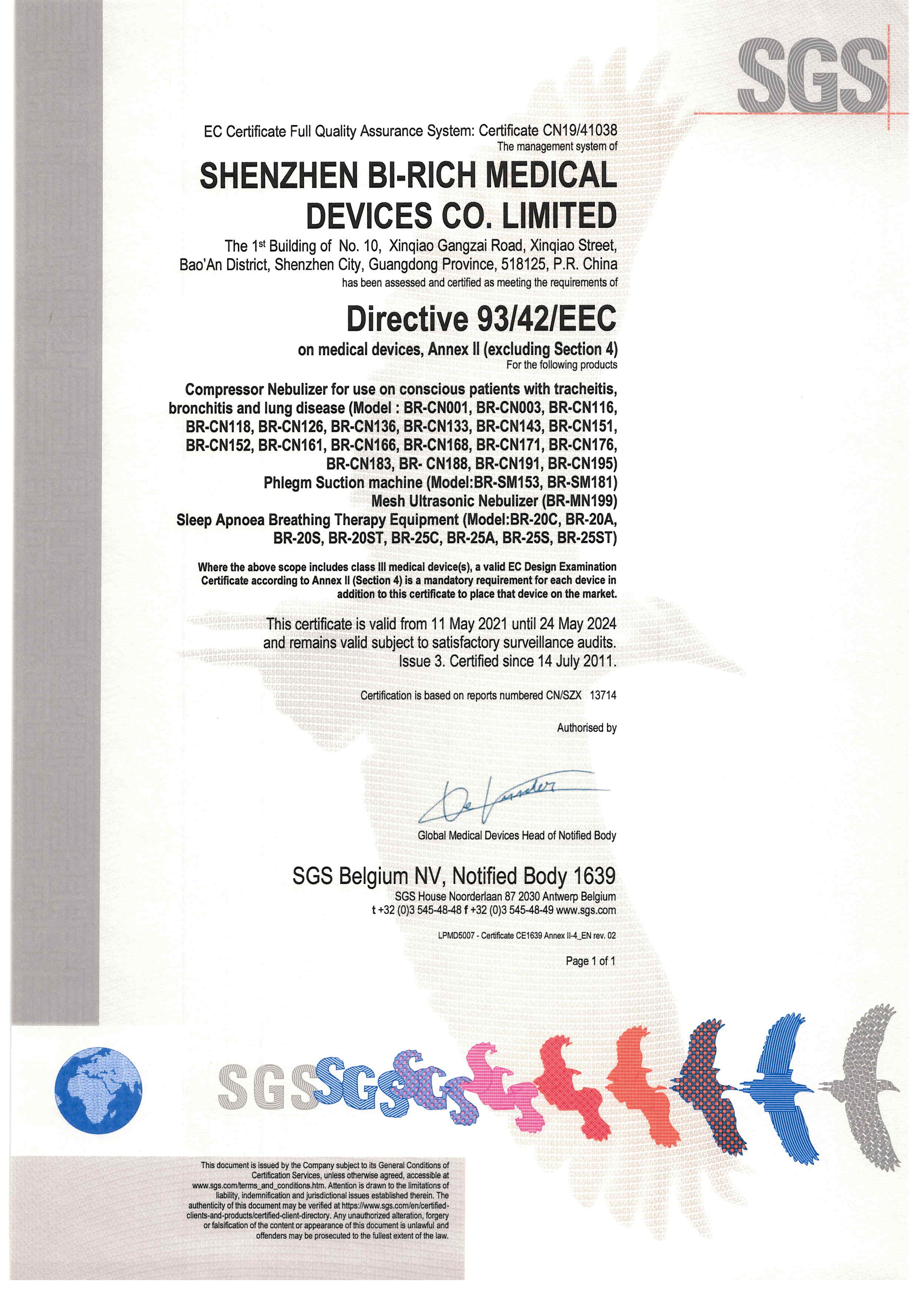百瑞琪通过SGS公司医疗器械质量管理体系ISO13485和欧盟CE认证